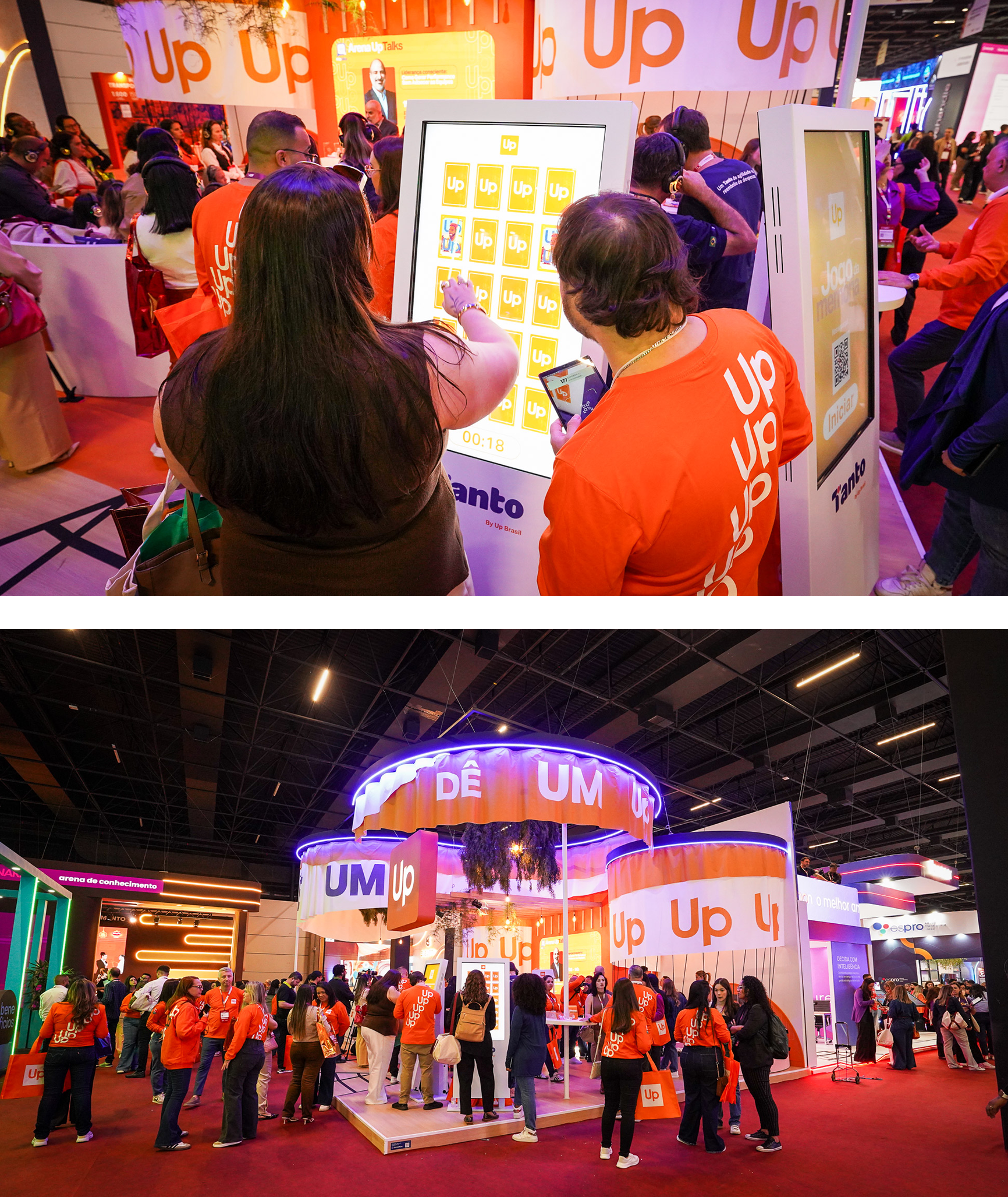 Inserida em um mercado altamente competitivo, com múltiplas soluções disputando atenção, discursos técnicos semelhantes e estandes visualmente ruidosos, a Up precisava ir além da exposição de produtos. O desafio era traduzir, de forma clara e sensorial, que seus benefícios não são apenas ferramentas operacionais, mas soluções reais de bem-estar, engajamento e performance para empresas médias e grandes.
